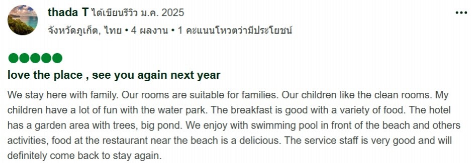 These reviews show that the guest experience goes beyond simple relaxation. It includes comfort, attentive service, and engaging activities that help create meaningful and enjoyable moments for the whole family.